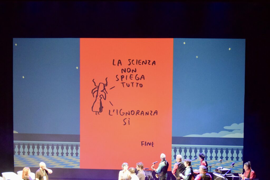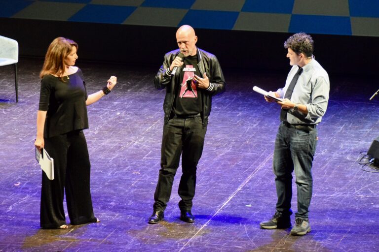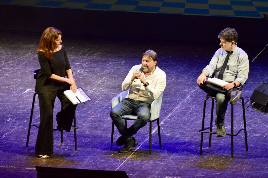 Una super serata quella che nell’ambito del “Festival Antani – Comicità e satira come se fosse”, organizzato e promosso da Fondazione Livorno, ha infiammato un Teatro Goldoni pienissimo in occasione dell’evento di chiusura. Il “Gran Galà Premio Antani 2024″, condotto dai giornalisti Luca Bottura (direttore artistico) e Marianna Aprile accompagnati dalla Ridillo Band, ha visto la premiazione di ben 14 personalità appartenenti al mondo dello spettacolo, della politica e di molte altre categorie. Ad aprire le danze uno tra i personaggi più conosciuti nel panorama cinematografico italiano, vincitore del premio “Alla carriera basta che finisca” edizione 2023: Gianmarco Tognazzi, il quale si è autoproclamato padrino della kermesse ed ha avuto l’onore di assegnare al ministro dell’agricoltura Francesco Lollobrigida il premio “Supercazzola” (altri candidati Elly Schlein e Giuseppe Conte). Tra i prestigiosi riconoscimenti anche il “Premio Staino”, in memoria di Sergio Staino, assegnato dai figli Ilaria e Michele al fumettista Maicol & Mirco (Michael Rocchetti). “Sono molto emozionato – dice -. Quando è scomparso Sergio per me è stato un colpo al cuore. Mi sono ispirato tantissimo a lui, non lo cito spesso, ma è forse la persona da cui ho preso di più. Un autore di cui non c’è stato un periodo migliore e uno peggiore, è nato che era già perfetto”.