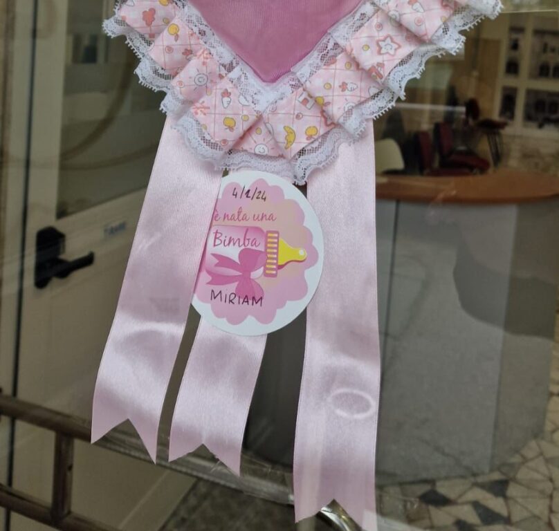 Per festeggiare il lieto evento i colleghi dei neo genitori Jessica e Francesco hanno appeso un fiocco rosa all'ingresso della sede di via San Giovanni e hanno fatto recapitare ad Ostetricia un omaggio floreale
