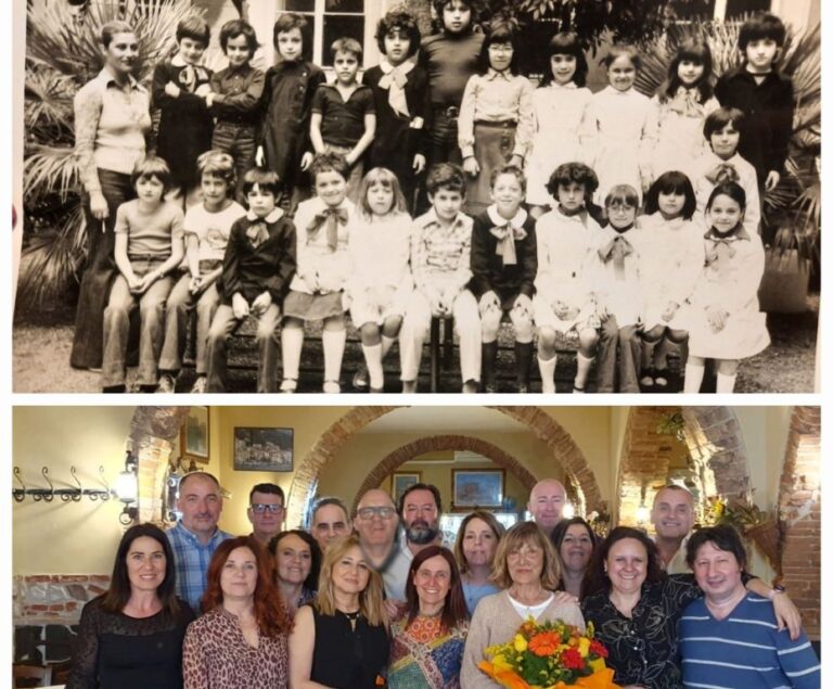 Sono passati 50 anni dalla 1ª classe elementare quando ci siamo conosciuti e finalmente ci siamo ritrovati. Pranzo di classe al ristorante La tramontana. La foto è la prima classe delle Carlo Bini ed oggi con la meravigliosa maestra Gabriella Bonicoli.