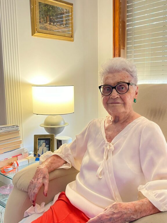 La signora Mariadelaide (ma i nipoti la chiamano nonna Adi) è nata a San Miniato poi da bambina è venuta a Livorno, dove ha avuto modo di appagare la sua grandissima passione per il mare e per le nuotate. Ha due figli, Alessandro medico in pensione, e Cristina, professoressa ordinaria di biologia all’università di Camerino, due nipoti, Veronica e Riccardo, e un bisnipote, Tommaso di tre anni.
