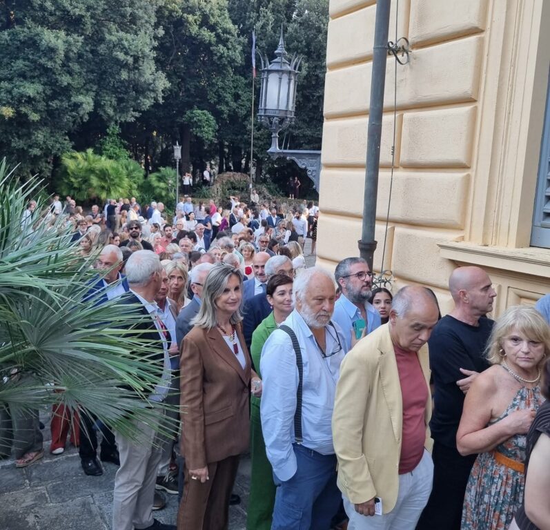 La coda all'ingresso della mostra il giorno della inaugurazione