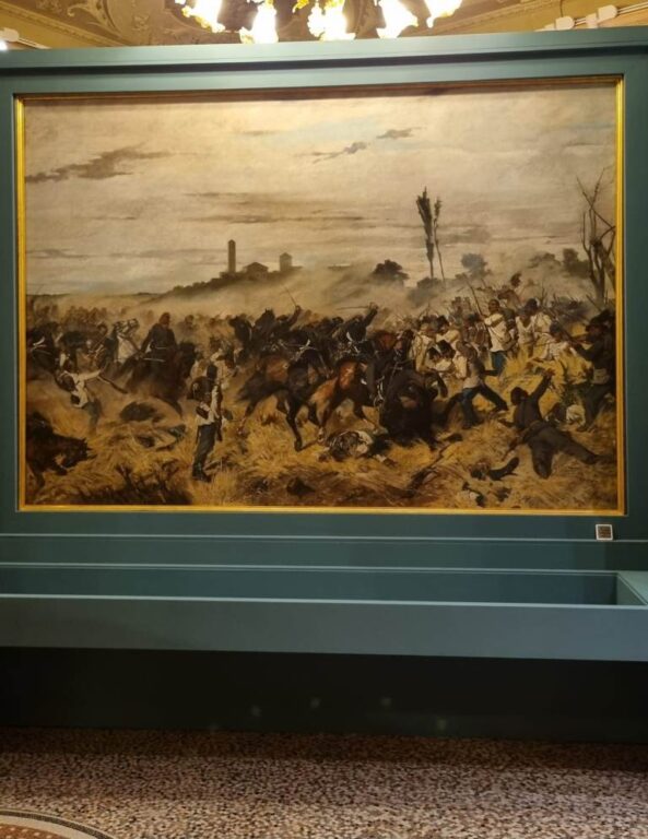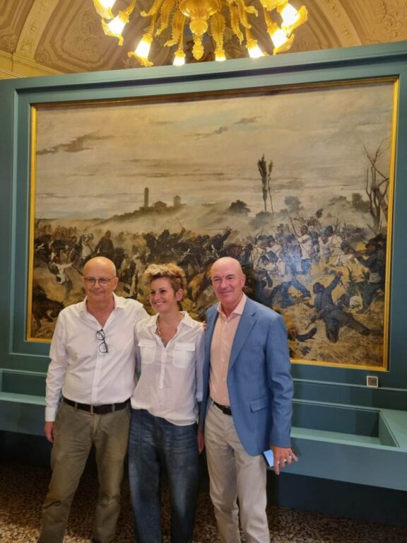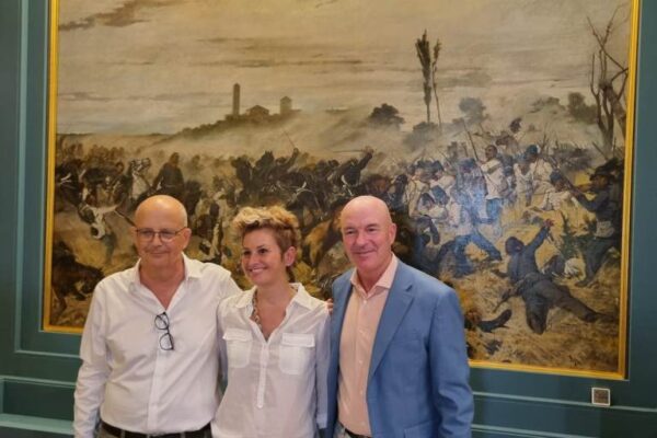 Vi presentiamo il primo dipinto, anzi doppio dipinto, della mostra “Giovanni Fattori. Una rivoluzione in pittura” che aprirà al pubblico il prossimo 6 settembre (nel giorno del bicentenario dalla nascita di Fattori: 6 settembre 1825). E’ stato presentato stamattina dal sindaco Luca Salvetti insieme all’assessora Angela Rafanelli e al curatore della mostra Vincenzo Farinella: “E’ un unicum, nessun museo in Italia ce l’ha – ha spiegato Farinella – Parliamo di una tela bifronte, ovvero due dipinti sulla stessa tela: “Una carica di cavalleria a Montebello” già visibile al secondo piano e “Clarice Strozzi e i Medici“, ovvero il dipinto sul retro. Quest’ultimo non era mai stato svelato, lo facciamo oggi per la prima volta dopo un importante lavoro di restauro. Sono entrambi di Fattori anche se sembra la mano di due artisti differenti. Proprio per questa loro differenza, i due dipinti raccontano alla perfezione i due stili che era in grado di esprimere. La tela si trova al piano terra e sarà una delle prime del percorso della mostra”. Salvetti e Rafanelli hanno poi spiegato che saranno 220 le tele in esposizione, di cui 50 di proprietà del Comune e le restanti 170 “frutto di un incredibile lavoro di contatti e condivisione con collezionisti e privati che ci ha portato personalmente nelle case dei livornesi per convincerli ad esporre”. Rafanelli ha infine aggiunto che “Fattori rappresenta l’anima più autentica di Livorno e che questa mostra sarà l’occasione per tutti noi di riscoprire la nostra identità”.