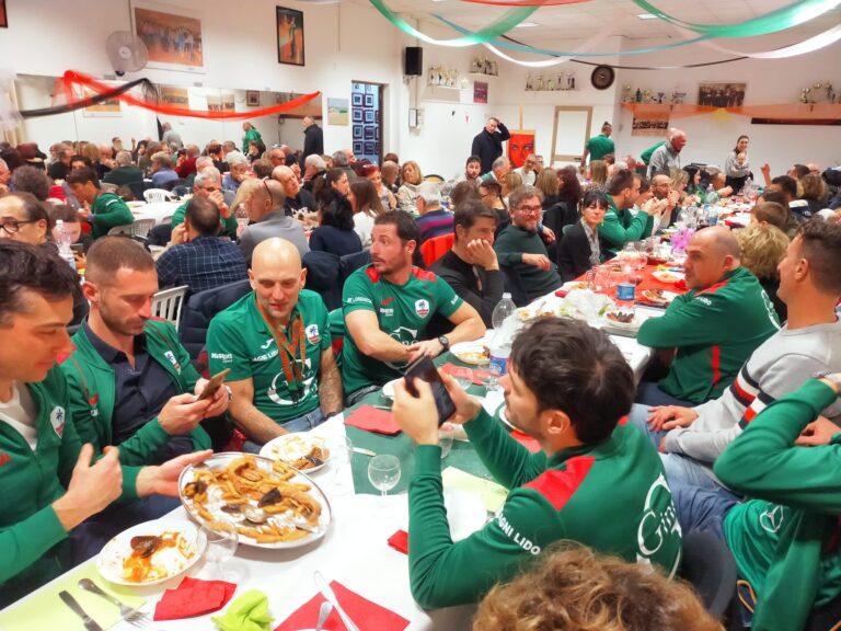 “Grazie al massiccio supporto della nostra comunità e di coloro che ci sono vicini – spiegano dalla Sezione Nautica – siamo riusciti non solo a superare le difficoltà incontrate, ma anche a lanciare il merchandise ufficiale della nostra Sezione Nautica dedicato ai nostri appassionati tifosi venduto la stessa sera. Desideriamo esprimere la nostra sincera gratitudine alla presidente del circolo, la quale ha dimostrato un impegno straordinario nella realizzazione di questa bellissima iniziativa”. Presente alla serata anche il consigliere regionale Francesco Gazzetti e l’assessore Rocco Garufo. L’atmosfera è stata vibrante e coinvolgente, caratterizzata da un sostegno senza precedenti. “Grazie alle ampie pubblicazioni sui social media e alle generose donazioni effettuate attraverso l’Iban fornito dalla Sezione Nautica siamo riusciti a raccogliere una somma considerevole – raccontano felici dall’organizzazione – La serata è stata un vero successo, tanto che è stata dichiarata sold out, suscitando grande gioia nel constatare che di fronte alla nostra richiesta di aiuto i nostri tifosi, vogatori e sostenitori hanno risposto con entusiasmo, contribuendo in modo significativo al nostro percorso di rinascita. Un grazie speciale va alla piccola rappresentanza, guidata da Emiliano Fanelli, della sezione nautica Venezia che è stata presente alla cena”.