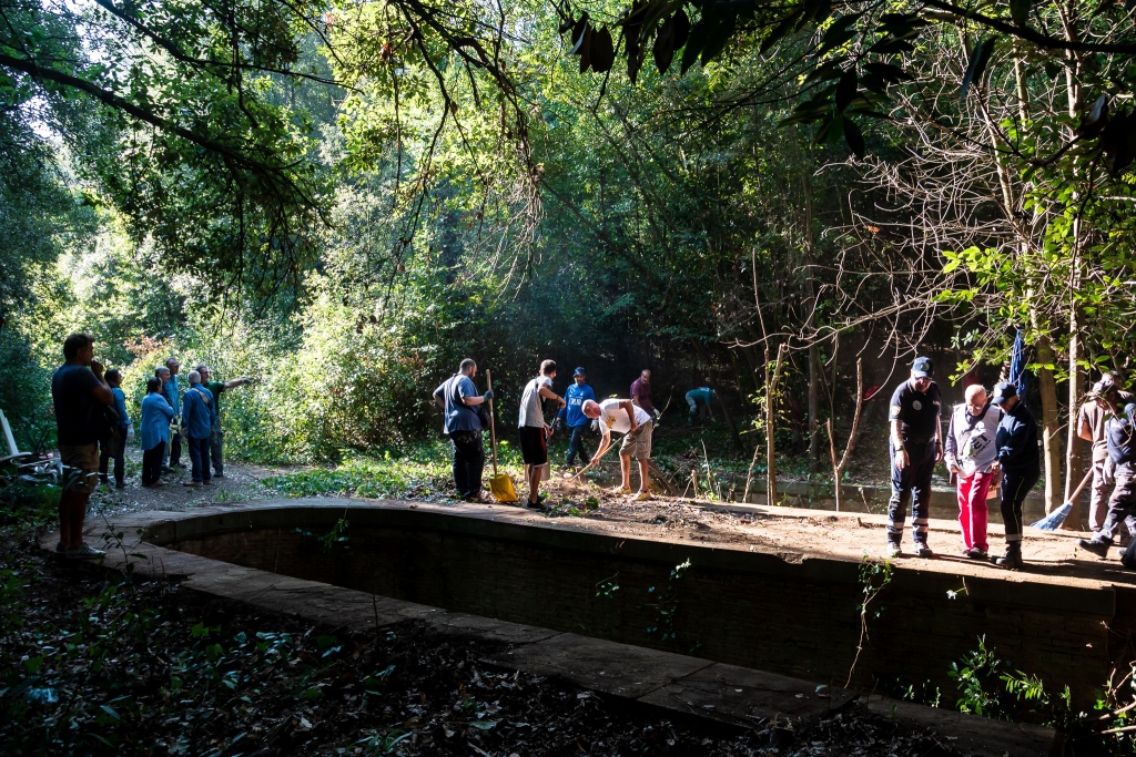 “E’ stato incredibile vedere così tanta partecipazione. Possiamo annunciare che a breve organizzeremo la prima passeggiata aperta al pubblico”. Il presidente di Reset Livorno Giuseppe Pera quasi non ci crede nel commentare la mattinata di pulizia del parco di Villa Rodocanacchi a Monterodotondo che ha visto il 7 ottobre la partecipazione di 113 persone. “Grazie a tutte queste persone siamo riusciti a pulire praticamente tutti gli 11 ettari di bosco in una mattinata compresi i due moletti del laghetto artifichiale che i Rodocanacchi, benestanti, avevano deciso di costruire all’interno del parco della loro villa per poter andare in barca. A questo punto non restano che alcuni ritocchi, diciamo così, alle panchine e altri manufatti, per la prima passeggiata”. Tra i 113 partecipanti, Pera ringrazia “gli amici di sempre” di Anpana e Acchiapparifiuti, il Club Alpino (Cai) e i podisti dell’Atletica Amaranto che si sono presentati all’ingresso della Villa dicendo “oggi ci alleniamo così” e che a fine mattinata sono tornati, parliamo solo del gruppo di podisti, con 16 sacchi di rifiuti. “In totale – prosegue Pera – parliamo di circa una ottantina di sacchi condominiali di spazzatura raccolta tra cui una bottiglia del 1950. E’ stata una bella mattinata. Grazie davvero a tutti i presenti”.
