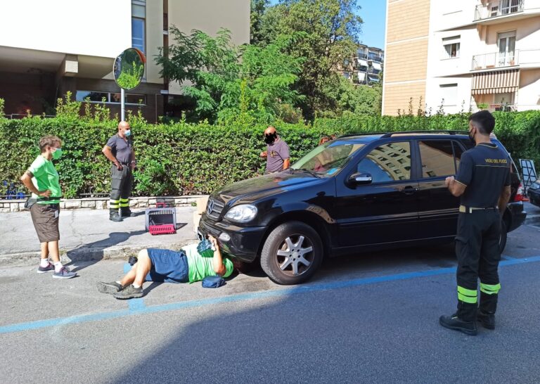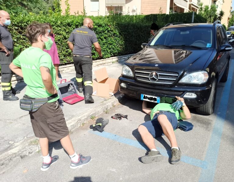 Un gattino di appena due mesi si era intrufolato all’interno del vano motore di una Mercedes parcheggiata in via Goito non riuscendo più ad uscire. Di lui si riusciva a sentire soltanto il flebile miagolio, come un pianto, che ha innescato così la catena dei soccorsi. Sul posto, insieme ai vigili del fuoco, si sono portati i volontari dell’Anpana Odv sezione di Livorno (foto in pagina tratte dalla loro pagina Facebook) che con pazienza e amore sono riusciti a liberare l’animale dalla sua temporanea prigione. Il micio è stato affidato alle cure amorevoli di una residente della zona in attesa di trovare il padrone del gattino.