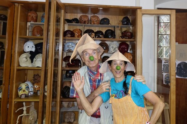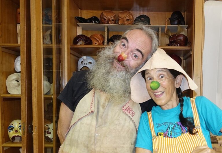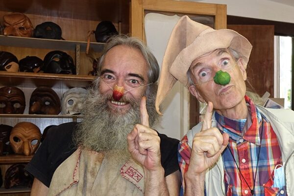 DA LIVORNO AGLI USA. Dov’è il punto di contatto tra i due? Durante il lockdown più stringente della pandemia, a causa della chiusura di tutti i teatri e dell’impossibilità di reperire il cuoio, Giovanni Balzaretti ha cominciato a specializzarsi nella realizzazione di nasi, che sono la parte più difficile di tutta la maschera, ma anche quella per la quale serve meno materiale. I nasi non si trovano in commercio con una scala che va dall’amatoriale al professionista così, chi fa il clown di lavoro, deve accontentarsi di quelli industriali di plastica color rosso: “È come se un violinista avesse a disposizione solo violini cinesi realizzati in serie e non potesse rivolgersi ad un liutaio” spiega Balzaretti. I nasi in cuoio vengono pian piano esposti sui social network finché non arrivano a Ginevra Sanguigno e Italo Bertolasi, i due clown milanesi che nel 2000 hanno fondato l’associazione Clown One Italia Onlus con il patrocinio di Patch Adams, e che con altri attivisti e volontari portano il sorriso negli ospedali di tutto il mondo. Ginevra e Italo commissionano a Giovanni Balzaretti due nasi in cuoio verdi da “clown nel bosco” e durante un collegamento video li mostrano a Patch Adams che se ne innamora, tanto da esclamare subito: “I want twenty for my group and one for me!”. Così i 21 nasi di cuoio realizzati da Balzaretti lasciano il suo laboratorio in via Marradi a Livorno e partono alla volta degli Stati Uniti. “È una grande emozione soprattutto perché loro non sono clown qualunque, la squadra storica di Patch Adams è composta da persone che fanno un mestiere difficile e generoso in cui bisogna essere molto solidi, strutturati. Sono corazzati per raggiungere tutti i luoghi difficili del mondo, dove la sofferenza è di casa. Sapere che con indosso i miei nasi potranno strappare un sorriso è un motivo di orgoglio e di felicità” è il commento di Giovanni Balzaretti, che non è ancora riuscito a incontrare il celeberrimo inventore della terapia del sorriso, ma ha avuto l’ulteriore soddisfazione di vedere messo in palio un proprio naso in cuoio come primo premio di un concorso durante il Clown&Clown Festival di Macerata, dove Adams aveva un personale workshop.