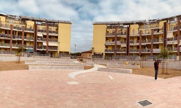 Inaugurato lo spazio antistante l’edificio circolare in via Stenone nel quartiere di Shangai, il cosiddetto anfiteatro, trasformato dal Comune in spazio verde a disposizione dei cittadini, dei bambini e degli studenti. Di fatto è stato eseguito l’intervento all’interno dello spazio verde davanti all’edificio semicircolare oltre che sul marciapiede opposto. L’intento è stato quello di creare una sorta di area attrezzata che potesse essere anche utilizzata sia dal quartiere che dalla scuola antistanti. Da qui l’ampliamento in direzione della scuola, anche per ridurre la velocità veicolare. Lo stesso anfiteatro ed alcuni elementi didattici e di svago richiamano i materiali e le geometrie esistenti. Elementi di particolarità sono alcune scritte sulla pavimentazione, un orologio solare, alcune sfere di gomma che ricordano i pianeti ed una piccola parete da arrampicata (junior).