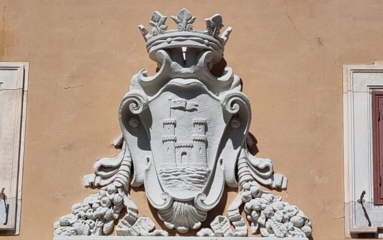 Restaurato lo stemma sopra il portone di Palazzo Comunale. Dal 7 novembre 2008, come si legge sulla rivista istituzionale del Comune, CN-Comune Notizie”, (ottobre-dicembre 2008), oltre allo scudo con la fortezza torricellata presenta gli ornamenti di città: la corona turrita in alto e le fronde di quercia e alloro in basso.