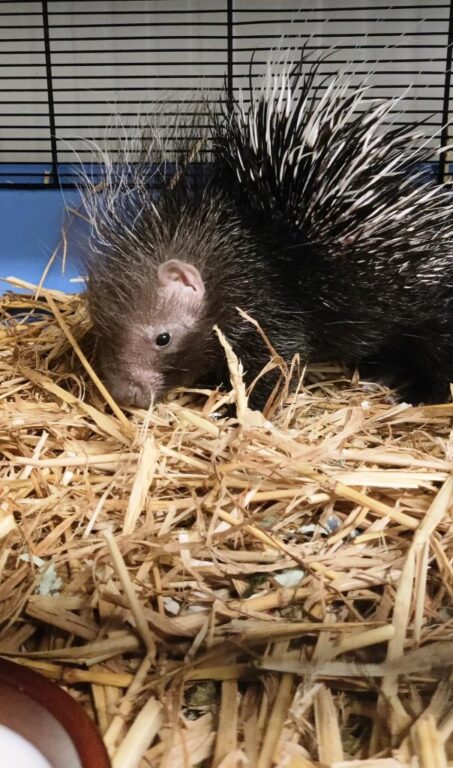 A ritrovarla, a fine luglio, è stato il proprietario del terreno in cui si trovava e dove avevano preso fuoco alcune sterpaglie lungo una strada provinciale. Aveva ancora il cordone ombelicale attaccato, pesava poco più di 300 grammi e non presentava ustioni. Forse la madre si è allontanata per il fuoco e il cucciolo (femmina) è uscito dalla tana successivamente. Quando è stata soccorsa era infatti debilitata e con tutta probabilità non mangiava da qualche giorno. Una volta portata al Cruma è stata nutrita e sottoposta alle terapia necessarie per stabilizzare le sue precarie condizioni cliniche. Dopo il periodo di allattamento e svezzamento, cioè il passaggio dal latte al cibo solido, che dura 40/50 giorni, l’istrice ha continuato a crescere regolarmente e prima del rilascio aveva raggiunto i 9 kg. Per la vita delle istrici la sua età e il suo peso corrispondono all’ingresso nella fase adulta.