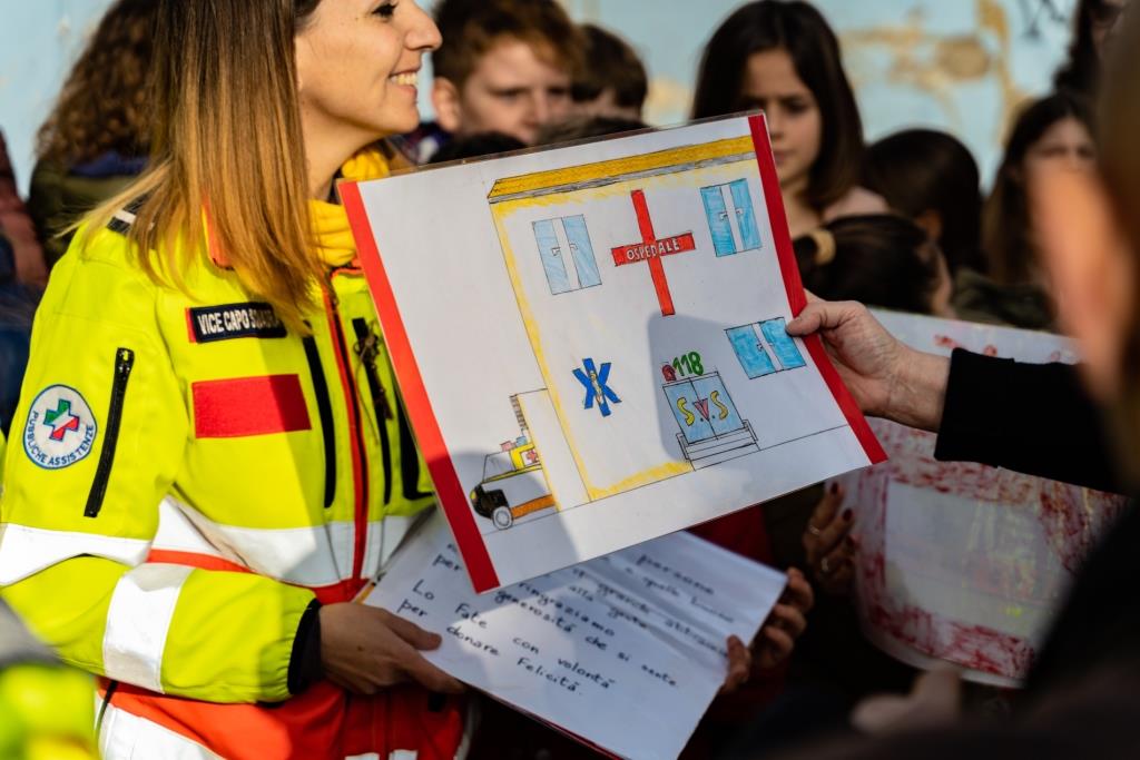 I bambini della scuola hanno poi donato ai volontari alcuni disegni in cui sono raffigurati proprio loro: i super eroi senza mantello che ogni giorno sono sulle strade per offrire il loro aiuto alla popolazione. Questo a dimostrazione dello stretto rapporto che c’è tra la Svs di Ardenza e i cittadini del quartiere.