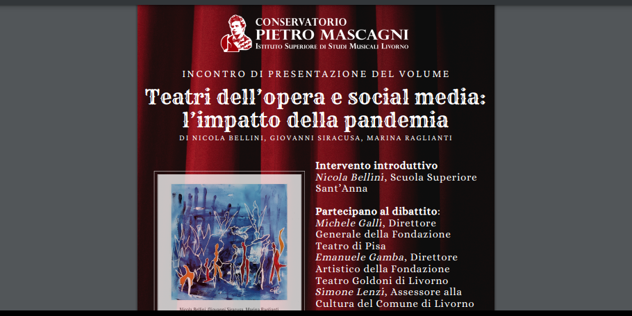 Venerdì 4 ottobre alle 18 si terrà nell’Auditorium “C. Chiti” del Conservatorio Pietro Mascagni un incontro di presentazione del Volume “Teatro dell’opera e social media: l’impatto della pandemia”, di Nicola Bellini, Giovanni Siracusa e Marina Raglianti... Continua a leggere