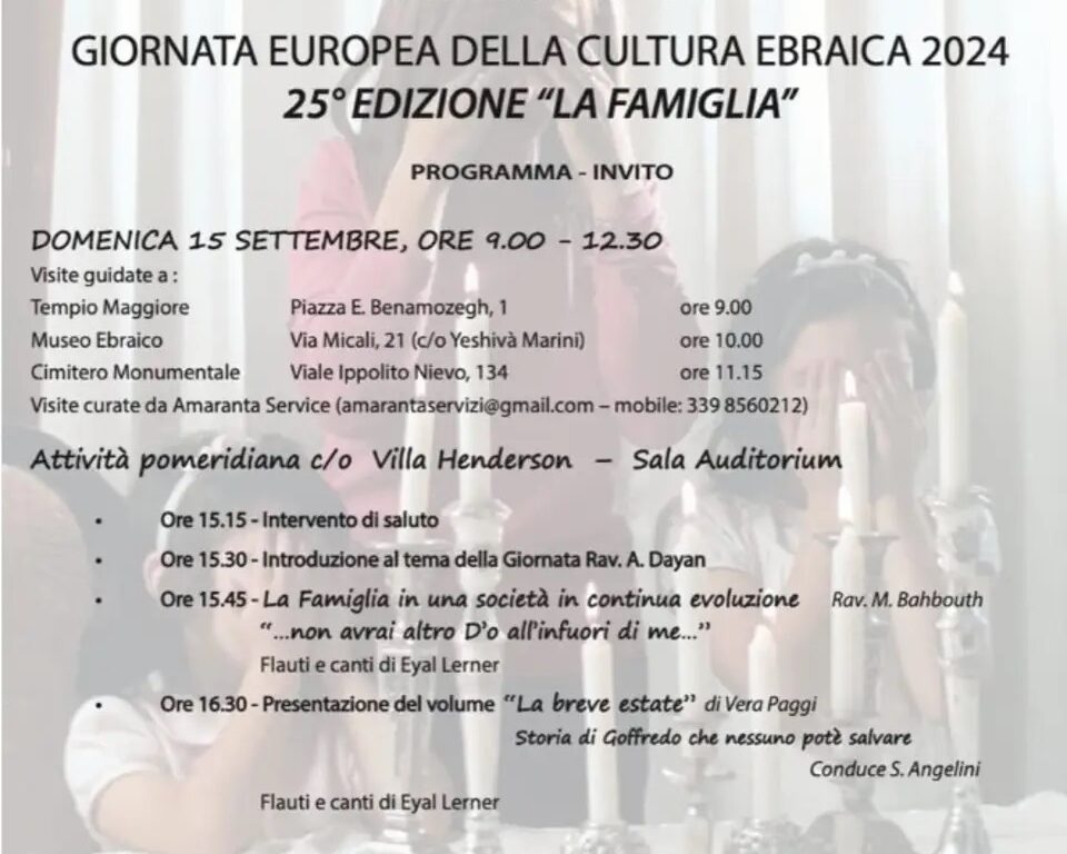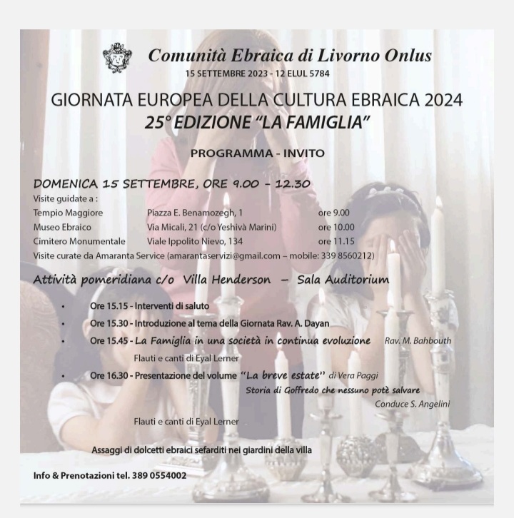 La Comunità ebraica di Livorno, che è stata tra le prime a partecipare a questa Giornata, presenta un calendario di iniziative, che si declinano durante l’intera giornata di domenica 15 settembre... Continua a leggere
