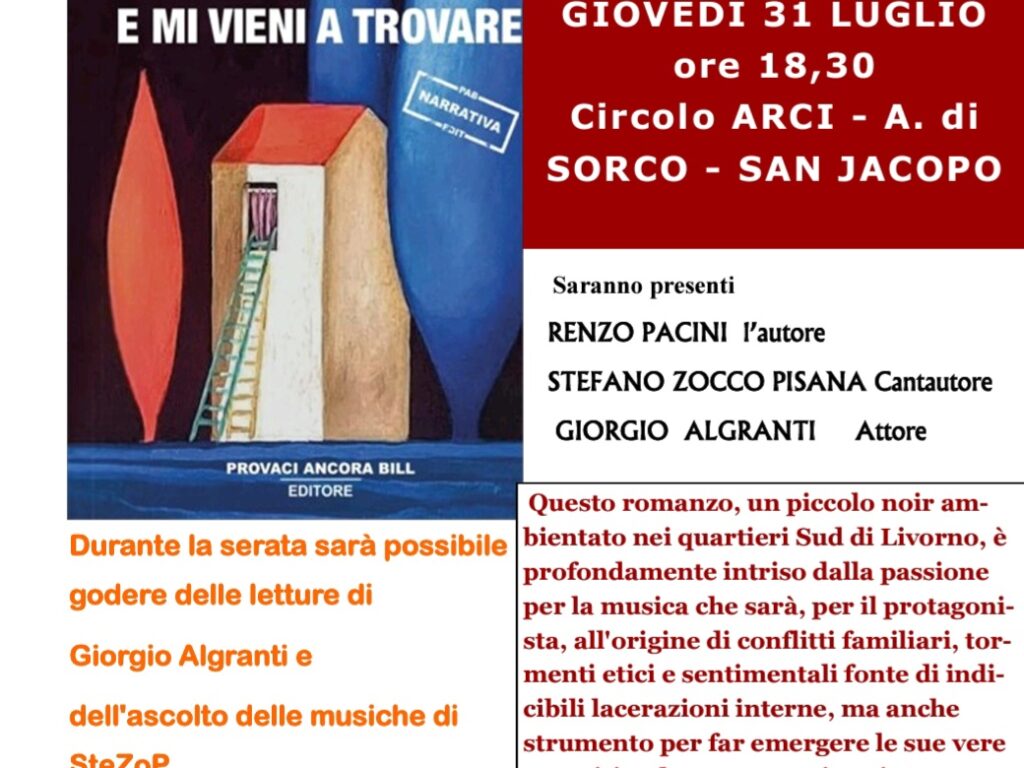 Il nuovo romanzo di Renzo Pacini verrà presentato giovedì 31 luglio alle 18.30 al Circolo Arci “A. di Sorco” a San Jacopo (via San Jacopo in Acquaviva, 86)... Continua a leggere