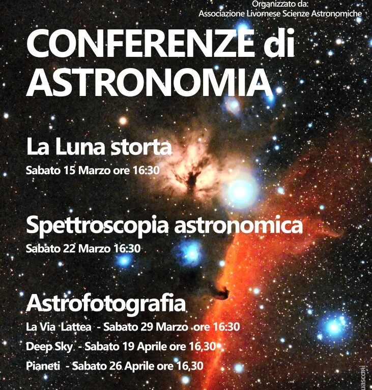 Sabato 22 marzo alle 16,30 l'incontro "Spettroscopia in astronomia", a cura dei soci A.L.S.A. Armando Bracci e Gabriele Comandi, un viaggio affascinante attraverso ottica, colori, onde e corpuscoli fino alla formazione degli spettri e le loro applicazioni scientifiche... Continua a leggere