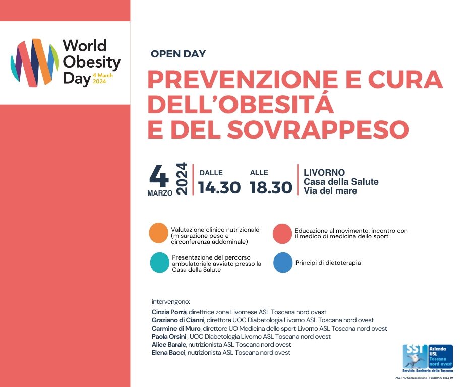 Oggi dalle 14.30 alle 18.30 nella Casa della Salute Livorno Sud di Via del Mare valutazioni clinico-nutrizionale, consulenze di dietoterapia e di educazione al movimento in occasione della giornata mondiale dell’obesità... Continua a leggere