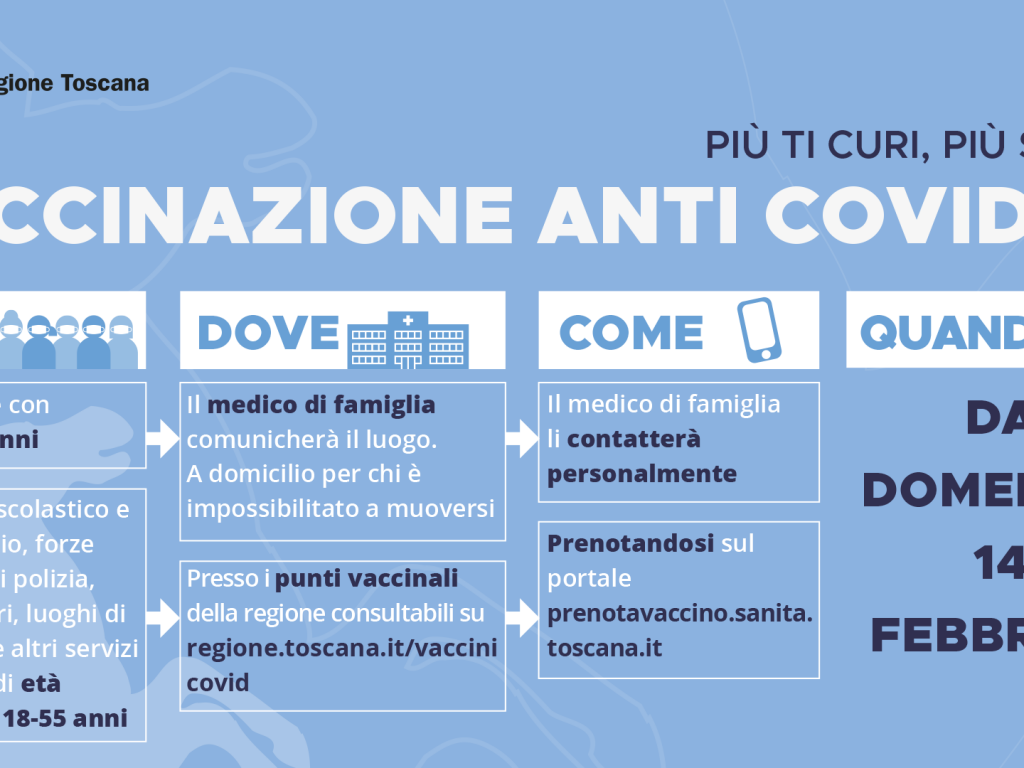 La prima fase di vaccinazioni con il nuovo siero AstraZeneca sarà avviata a partire da giovedì 11 febbraio: le agende per prenotarsi sul portale regionale prenotavaccino.sanita.toscana.it sono aperte (foto FB Eugenio Giani)... Continua a leggere