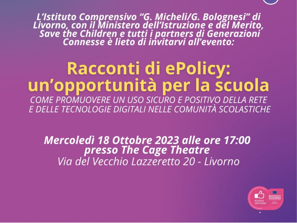 Nell’evento verrà illustrata l’esperienza 2022-23 del Comprensivo Micheli-Bolognesi che è stato scelto dal Ministero come sede ospitante della giornata perché “Scuola Virtuosa” – insignito del badge di “Generazioni Connesse” come Istituto esempio di buone pratiche in merito all’online da diffondere nelle scuole del territorio... Continua a leggere