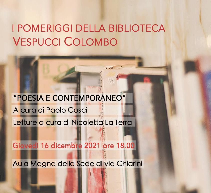 Giovedì 16 dicembre alle 18 nell'aula magna dell'istituto Vespucci in via Chiarini si terrà l'evento "Poesia e Contemporaneo"... Continua a leggere