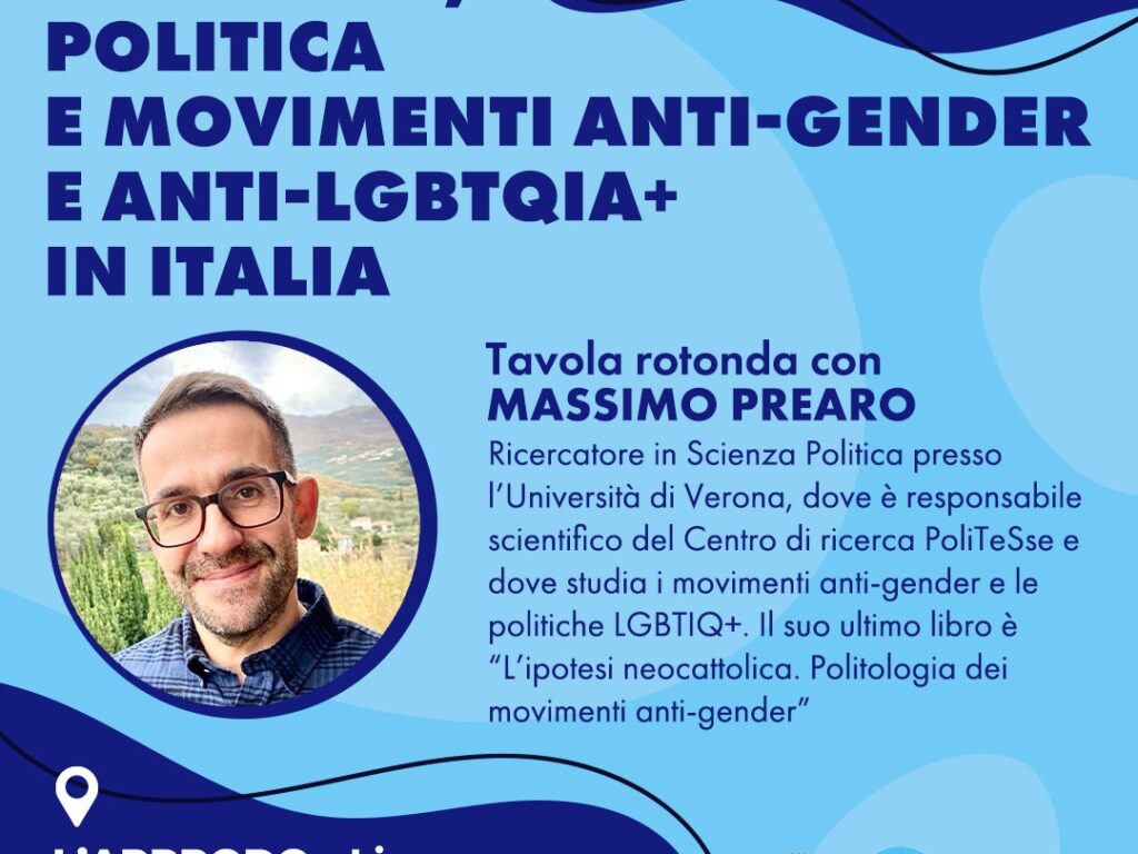Sabato 20 gennaio, dalle ore 17, presso il Centro Ascolto LGBTQ+ L'Approdo si svolgerà una iniziativa intitolata "Attualità, politica e movimenti anti-gender e anti-LGBTQIA+ in Italia" con l'intervento di Massimo Prearo... Continua a leggere