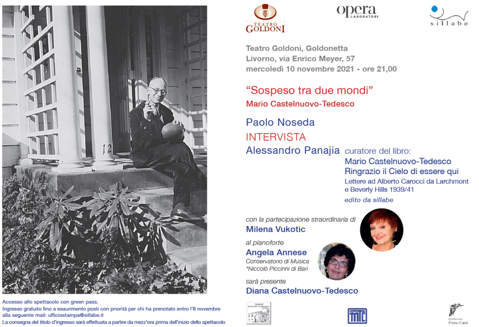 La casa editrice Sillabe e Opera Laboratori in collaborazione con la Fondazione Teatro Goldoni, dedicano la serata “Sospeso tra due mondi”, al ricordo di uni dei più importanti compositori del secolo scorso, Mario Castelnuovo-Tedesco... Continua a leggere