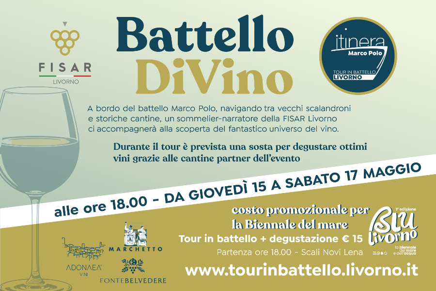 Durante il tour è prevista una sosta per degustare ottimi vini grazie ai partner dell’evento. Incontro e partenza dalle cantine di scali Novi Lena alle ore 18.00 da giovedì 15 a sabato 17 maggio. Acquisto biglietti online su https://www.tourinbattello.livorno.it/prenota-tour/battello-divino/... Continua a leggere