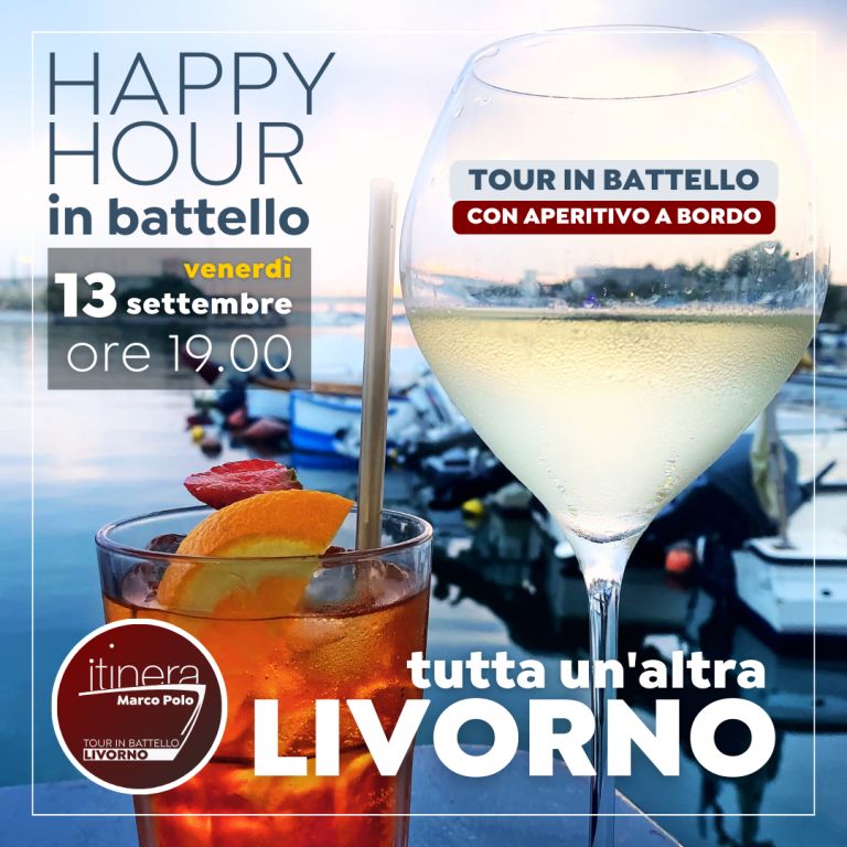 Venerdì 13 settembre torna l'Happy Hour in battello. Appuntamento ore 19 da scali Novi Lena, acquisto biglietti online sul sito www.tourinbattello.livorno.it. INFO: 348 738 2094... Continua a leggere