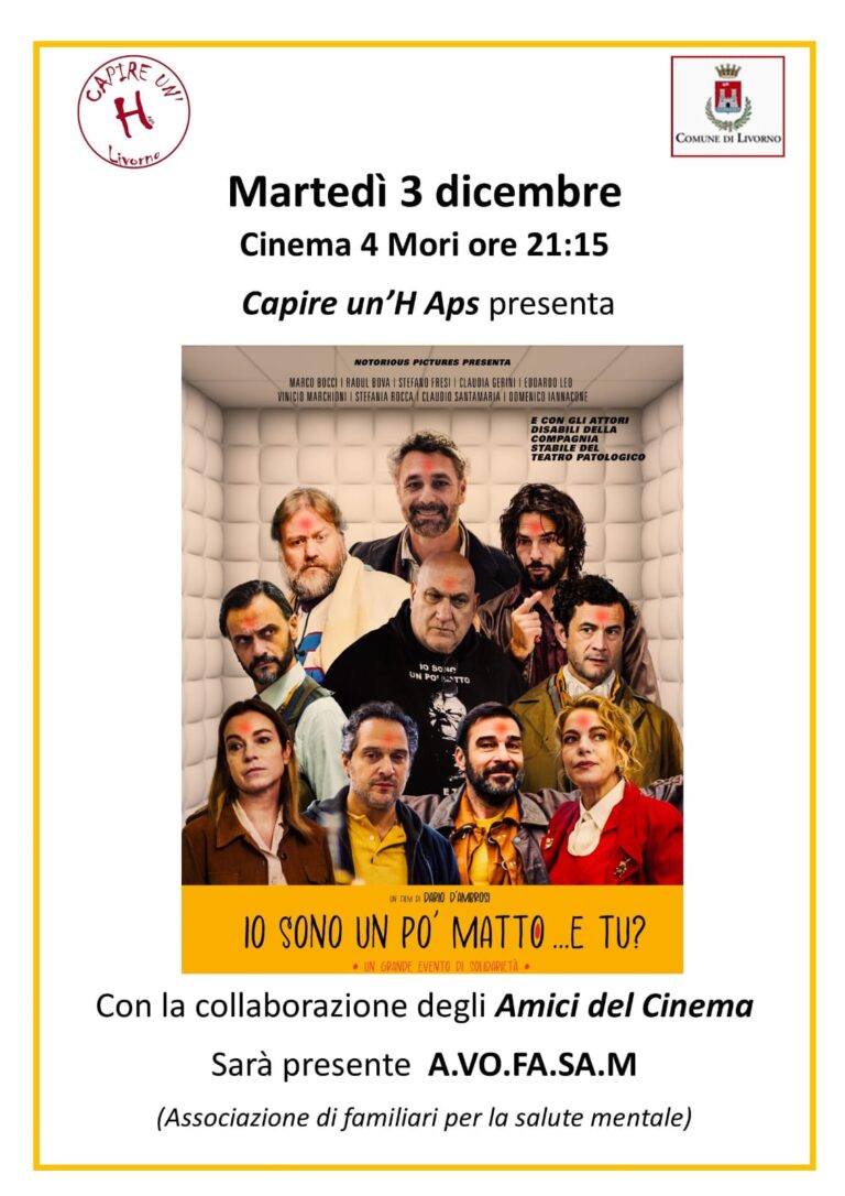 Il 3 dicembre alle 21.15 verrà proiettato al cinema 4 Mori il film “Io sono un po’matto e tu?” una collaborazione degli Amici del cinema con l’associazione APS ‘Capire un’ H’ per ricordare la data del 3 dicembre Giornata Internazionale della persone con disabilità istituita nel 1992 dall’ONU: Un giorno all’anno tutto l’anno. Da molti anni ‘Capire un’H’ attraverso film, incontri, presentazione di libri, mostre fotografiche cerca di abbattere le barriere culturali ancora esistenti nei confronti di soggetti fragili e disabili sottoposti quotidianamente ad emarginazione ed atti di bullismo.
