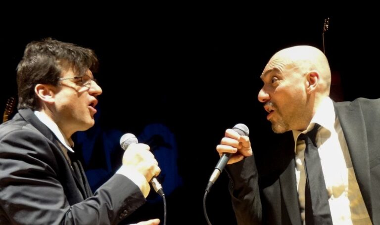 “I due corsari” è la storia di un’amicizia tra i giovanissimi Enzo Jannacci e Giorgio Gaber che nel 1958, dopo la collaborazione con Adriano Celentano, decidono di formare un duo canoro. Gaber ha già un contratto con la Dischi Ricordi ed è, appunto, per la neonata etichetta milanese che, i due andranno a incidere insieme. Il genere preminente dei loro pezzi è il nascente rock’n’roll, tranne qualche eccezione più melodica. Ciò che accomuna, però, tutte le canzoni del loro repertorio sono i testi, sempre umoristici e a volte antesignani del rock demenziale (ad esempio Una fetta di limone, forse il loro brano più noto). Nel 1960 il duo si scioglie, principalmente per l’affermarsi di Gaber come solista, e anche Jannacci intraprende a sua volta la carriera di cantautore, ma la loro amicizia non ne risente. Continueranno a vedersi ma a lavorare a distanza, con qualche sporadica ma bellissima collaborazione come “Aspettando Godot”. Un breve, ma significativo momento della storia della canzone italiana. In scena due bravissimi cantanti-attori, la cui carriera oscilla tra musica pura, teatro e musical internazionali. Spettacolo molto comico che rende onore al divertimento che le vere amicizie sanno regalare. Ingresso allo spettacolo gratuito. Cena in luogo a cura di “Truck La Rosa” Info e prenotazioni: 3280625881 3203667354.
