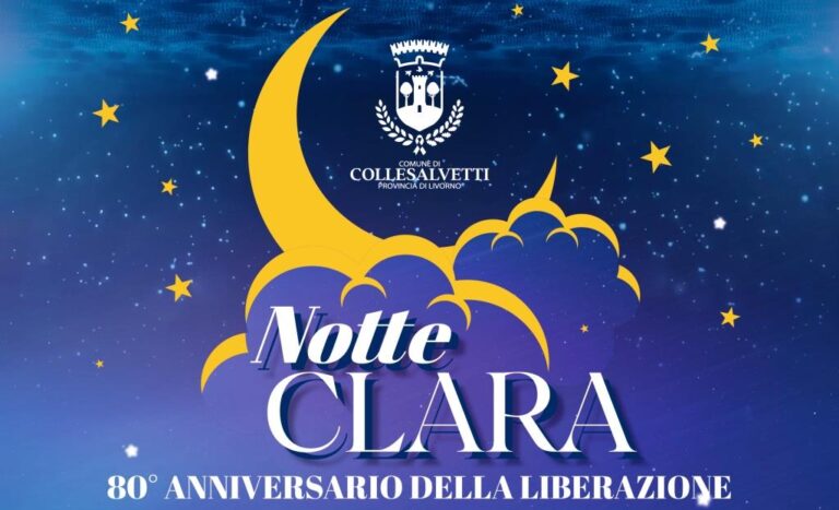 Giovedì 18 luglio, a partire dalle 18, torna a Collesalvetti l’appuntamento con la “Notte Clara”, in occasione dell’80° Anniversario della Liberazione della città dal nazifascismo, avvenuta il 18 luglio 1944. Anche quest’anno le strade torneranno ad animarsi con tantissime iniziative: oltre all’apertura serale dei negozi in piazza, ci saranno spettacoli, spazi gioco per bambini, stand per la promozione delle associazioni del territorio e food-truck.