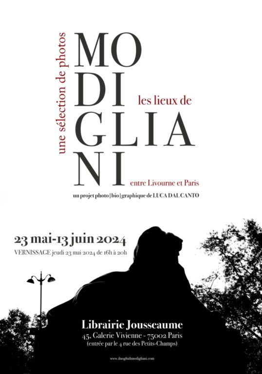 Dal 23 maggio al 13 giugno alla Librairie Jousseaume, la più antica libreria di Parigi luogo di incontro dei più importanti intellettuali e letterati tra Otto e Novecento, ospiterà il progetto foto/biografico “I luoghi di Modigliani tra Livorno e Parigi” che il livornese Luca Dal Canto espone dal 2014 tra Italia e Francia e che inaugurerà giovedì 23 maggio
