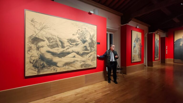 “Voglio innanzitutto ricordare un mio collaboratore storico – spiega Emanuele Barletti, curatore della mostra – Modestino Romagnolo, scomparso recentemente. Ringrazio anche la ditta livornese 90 servizi, che ha portato qua (a Villa Mimbelli, ndr) le opere d’arte a titolo gratuito. Ad Annigoni piaceva il carattere sanguigno dei livornesi, il mare e la pesca: aveva comprato un peschereccio e l’aveva chiamato ‘La Bimba’, con questo navigava la costa del Mar Tirreno fino a raggiungere La Spezia. Ci tengo a ricordare che in questo stesso periodo, al Museo della città, sarà allestita una mostra sui disegni di Leonardo da Vinci, la scelta di allestire due mostre in periodi così ravvicinati non è stata casuale: Annigoni era un grande studioso di Leonardo, il legame tra i due artisti è inconfondibile. Questa mostra è la più importante esposizione di opere di Annigoni che sia mai stata realizzata dopo la mostra a Palazzo Strozzi a Firenze nel 2000. Per la prima volta ci sono opere inedite di Annigoni: quattro cartoni preparatori per la realizzazione di affreschi, provenienti dal Santuario della Madonna del Buon Consiglio di Ponte Buggianese e tanti quadri che ci hanno concesso i numerosi collezionisti. Questa mostra presenta anche una sezione speciale, dedicata al rapporto delle opere di Annigoni con quelle di Mataresi e De Chirico, questa sezione è stata curata da Fabio Sottili, che è riuscito a recuperare varie opere di Mataresi al fine di confrontarle con quelle del suo maestro. Definisco questa mostra molto articolata, ma non antologica: non riesce a percorrere tutto il percorso umano e artistico di Annigoni perché ciò sarebbe impossibile da fare. L’invito che faccio a tutti coloro che vorranno assistere alla mostra, è quello di cercare di comprendere la profondità di un artista tanto bravo quanto è stato Pietro Annigoni”.