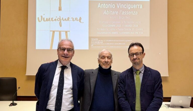 Inaugurata, negli spazi di Fondazione Livorno, la mostra di Antonio Vinciguerra dal titolo “Abitare l’assenza”, un’ampia retrospettiva curata da Giorgio Bacci che ripercorre oltre cinquant’anni di attività del maestro livornese. Dipinti, sculture e lavori su carta costruiscono un racconto fatto di memoria e sguardi restituendo la complessità di una ricerca capace di attraversare stagioni e linguaggi diversi. “Questa esposizione – dice il presidente di Fondazione Luciano Barsotti – è il frutto di un incontro che dura da anni. Con l’autore abbiamo condiviso progetti, scoperte, amicizie. È stata una sorpresa anche per me vedere riunito un viaggio così ampio, capace di dialogare con i grandi movimenti del Novecento”. Articolato in sei sezioni, il percorso si apre con “Autoritratti e memorie d’artista”, dove la figura dell’autore compare come un’ombra, una traccia più che una presenza. È qui che l’artista mette in scena il suo confronto con Picasso, De Chirico, Piero della Francesca e Casorati, filtrandoli attraverso la riflessione che dà titolo all’esposizione: l’assenza come motore dell’immagine. Nelle sale dedicate a “Immagini: tracce e impronte”, tovaglie piegate, tessuti segnati, ombre minime diventano superfici narrative: luoghi in cui ciò che non c’è più continua tuttavia a insistere nella materia. Una dimensione sospesa che prosegue ne “Il sacro”, dove legno, lamiera, gesso e cartone si trasformano in icone intime, lontane da qualsiasi retorica liturgica. Uno dei nuclei più significativi, “Il limite svelato”, rilegge la storica lezione di Germano Celant. Cornici dipinte, tele lasciate allentate, pacchi semiaperti interrogano il confine tra immagine e spazio, tra opera e sguardo. “Il limite non è mai una chiusura – sottolinea Bacci – ma un dispositivo che ci costringe a vedere come l’opera prende forma”. In “Origine”, l’uovo diventa simbolo universale e fragile, nucleo di luce che attraversa decenni di sperimentazioni. Il percorso si chiude poi con le celebri “Poltrone”, metafora della “presenza dell’assente”: sedute vuote, a volte dense di materia, altre appena incise, pronte ad accogliere uno sguardo. “In queste forme che sembrano sparire – afferma Vinciguerra – ritrovo la stessa tensione che mi ha guidato fin dall’inizio”. La mostra, accompagnata dal catalogo edito da Pacini, è visitabile gratuitamente ogni weekend fino al 1° marzo: un’occasione preziosa per riscoprire uno dei protagonisti più sensibili dell’arte livornese contemporanea.
