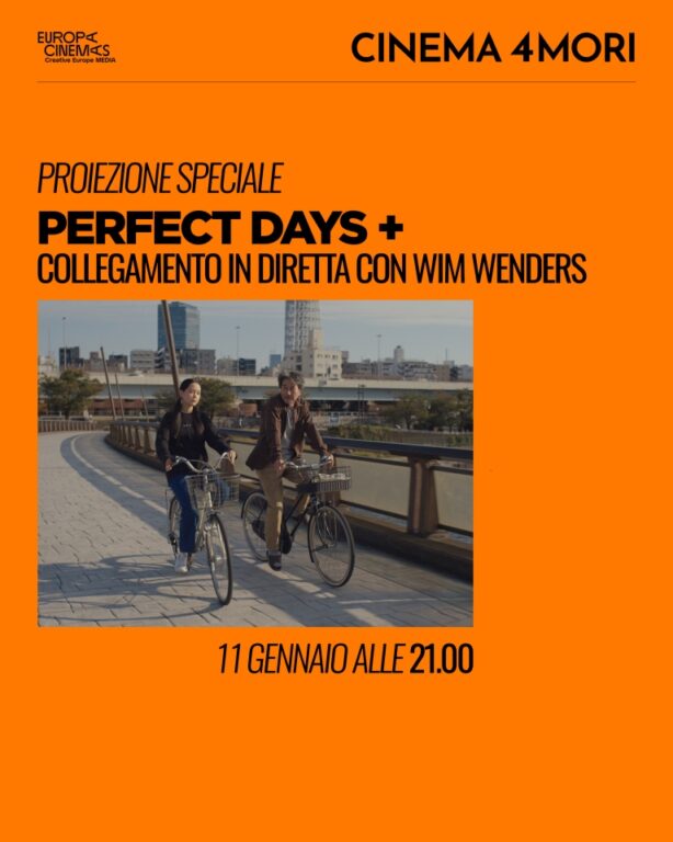 Giovedì 11 gennaio a partire dalle 21, il Cinema Teatro 4 Mori sarà protagonista di un evento di rilevanza internazionale in contemporanea con pochi altri cinema del Paese. Prima della proiezione del film “Perfect days” di Wim Wenders, gli spettatori avranno l’opportunità di assistere ad un collegamento in diretta con lo stesso regista, durante un’intervista realizzata dal giornalista Matteo Carzaniga, grazie alla collaborazione con Cinemas Europa – Creative Europe Media. Tutto compreso nel prezzo del biglietto di ingresso in sala. Un’esperienza che potrà senz’altro arricchire coloro che avranno modo di guardare la pellicola poco dopo sul grande schermo di via Pietro Tacca, guidandoli attraverso la vita, gli aneddoti e le curiosità di uno tra i registi più noti del panorama internazionale.