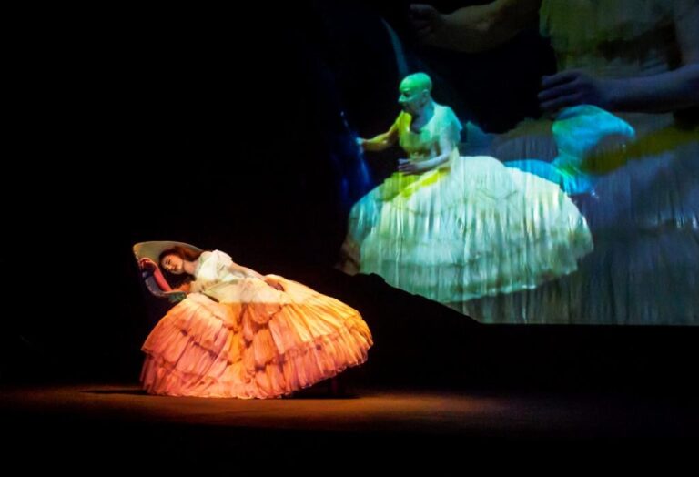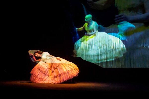 Negli anni 70 e 80, l’artista inglese con la “Lindsay Kemp Company” hanno suscitato meraviglia e scandalo in ogni parte del mondo, con un incrocio straordinariamente eterodosso di stili, mescolando teatro, mimo e danza, tradizione e esperimento, sottile ironia e sensazioni potenti. La magia degli spettacoli di Kemp ruotava soprattutto intorno al suo personalissimo carisma come interprete… e non importava se in ruoli di donna, uomo, elfo, marionetta o altro. Kemp Dances è stato creato nel 2015 e consisteva in una serie di “invenzioni e reincarnazioni” cioè, nuove creazioni frammiste ad alcuni dei suoi ‘pezzi classici’ ricreati e rivissuti. Un mosaico spettacolare ed emozionante di personaggi fantastici e danze create da un raccontastorie straordinario, il tutto sostenuto da un potente mix eclettico di musiche e illuminazioni. Offriva quattro magnifici e contrastanti personaggi per il trasformismo di Kemp: un’onirica identificazione melodrammatica con Violetta e Callas in “Ricordi di una Traviata”, poi un’allegoria profondamente semplice in “Il Fiore”, poi un viaggio dentro la pazzia mistica del leggendario ballerino de Les Ballets Russes, Nijinsky, e alla fine, in ‘’L’Angelo”, un’anima di seta che trascende ogni identità per diventare un simbolo dell’essenza umana. Lo spettacolo conteneva anche “Mi Vida”, creato dal grande coreografo Belga Luc Bouy, e “La Femme en Rouge” di Kemp, tutti e due per la sua prima danzatrice Daniela Maccari e l’attore-ballerino Ivan Ristallo. Come sempre con questo saltimbanco dell’anima, tutto era in divenire, diverso ogni sera.
