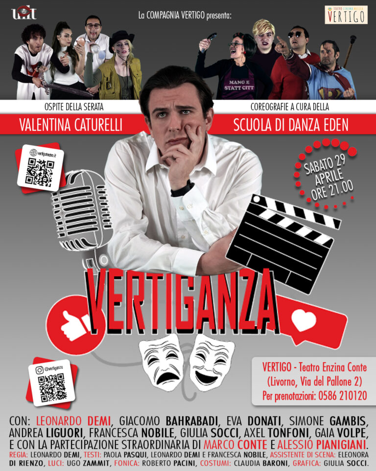 Nata dopo lo stage di comicità della scuola di arti sceniche Enzina Conte, diretto da Marco Conte e Paola Pasqui, che è anche l’autrice principale, Vertiganza ha dato la possibilità a giovani artisti di portare sul palco per il pubblico livornese, personaggi comici esilaranti, cantanti di valore e con la collaborazione ormai fissa della Eden danza, di proporre anche spezzoni di musical che tanto piacciono ai giovani e meno giovani. Non mancano parodie di serie TV di successo, in passato abbiamo riso con “La Casa di Carla” parafrasando La casa di Carta.