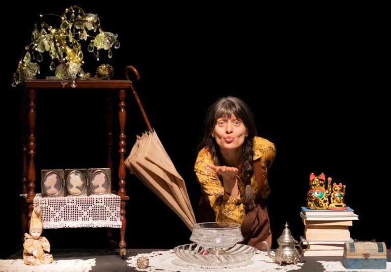 La scena prende forma proprio in un mercatino dell’usato: oggetti dimenticati, vecchie lampade e abat-jour diventano mondi, personaggi e paesaggi, in un gioco teatrale fatto di accenni, evocazioni e trasformazioni. Lo spettacolo attiva l’immaginazione dello spettatore, invitandolo a completare la storia con le proprie emozioni e i propri ricordi.