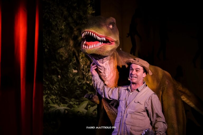 Una cosa che non smette mai di affascinarci è il mistero dei dinosauri. E se potessi catturare quell’eccitazione e portarla in vita, in una storia jurassica in modo divertente. Ora puoi farlo con il Dinosaur Show, un’idea fantastica per avvicinare tuo figlio al teatro, uno spettacolo comico, interattivo, culturale e didattico. Uno spettacolo unico, diverso da tutti gli altri, spiritoso, coinvolgente, con un intento didattico ed educativo incisivo ma leggero. I dinosauri sono incredibili repliche animatronic che uniscono anatomia, robotica, meccanica e teatro di figura per creare pupazzi con caratteristiche del tutto realistiche, per fornire qualcosa di veramente unico, reattivo e giocoso pronto a diventare immediatamente l’anima della scena ,teneri e giocosi mentre interagiscono con tutto il pubblico che verrà coinvolto.“Museo mondiale dei dinosauri” c’è grande fermento: lo scienziato Gregor (pazzoide e con i bianchi capelli dritti come tutti gli scienziati) è in attesa di un famoso “paleontologo dalla Germania”. Lo studioso porta con sé una “tavola del tempo”, che permetterà a questi enormi rettili dell’era mesozoica di tornare alla vita. Ma prima bisogna risolvere un enigma, brillantemente decifrato dal nostro paleontologo. E così accade il miracolo: sulla scena ecco apparire il triceratopo e il velociraptor, il brontosauro Brontolina, il tyrannosaurusrex e i suoi cuccioli, il petosauro e il gigantesco megaraptor.