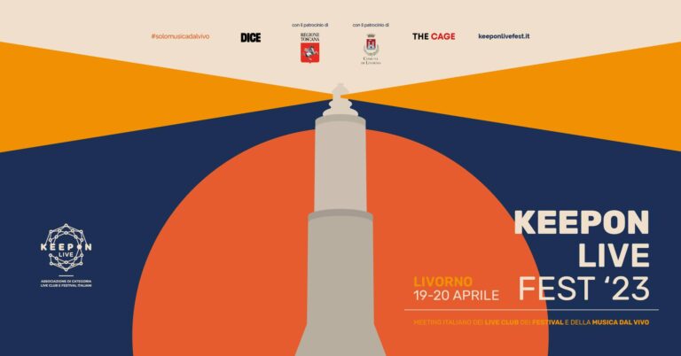 A quasi un anno dal traguardo del riconoscimento in Gazzetta Ufficiale del lavoro operato dai Live Club italiani nella promozione, diffusione e sostegno della musica dal vivo da parte delle commissioni Cultura e Lavoro del Senato della Repubblica per il quale si era spesa in una lunga battaglia, l’associazione KeepOn LIVE torna a riunire gli operatori della musica dal vivo con una due giorni di confronto, formazione e spettacolo (clicca sulla clip bianca su sfondo azzurro in alto in pagina per consultare il programma). Il KeepOn LIVE Fest 2023, patrocinato dalla Regione Toscana e dalla Città di Livorno, si terrà infatti il 19 e il 20 aprile a Livorno, a due passi dal mare, nella suggestiva cornice del The Cage, uno dei live club più importanti e longevi d’Italia, che ha appena festeggiato i suoi 20 anni di attività ed è sito nel piccolo teatro di un edificio storico adiacente a un parco pubblico cittadino.