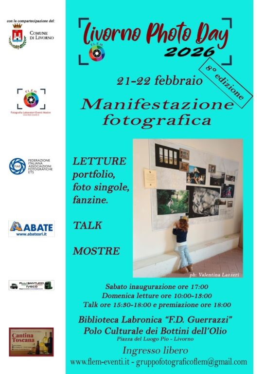 Livorno si riconferma capitale della fotografia d’autore. Sabato 21 e domenica 22 febbraio 2026, la Biblioteca dei Bottini dell’Olio ospiterà mostre, talk e letture portfolio con ospiti di rilievo nazionale. Si rinnova l’atteso appuntamento con LivornoPhotoDay, la manifestazione che quest’anno taglia il