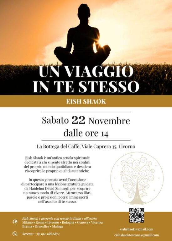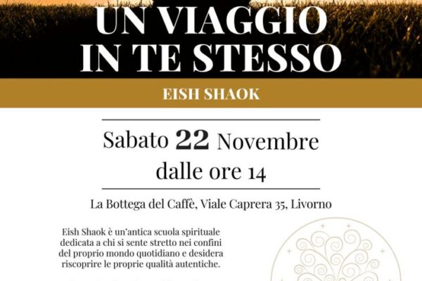 Sabato 22 novembre dalle 14 presentazione gratuita del percorso spirituale Eish Shaok alla Bottega Del Caffè, in viale Caprera 35. Eish Shaok è un’antica scuola spirituale dedicata a tutti coloro che si sentono stretti nei confini del loro mondo quotidiano e desiderano immergersi nelle proprie profondità.