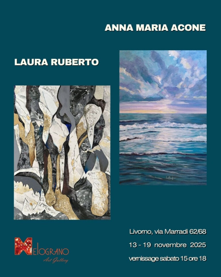 Dal 13 al 19 novembre la Melograno Art Gallery di Livorno ospita le mostre personali di Laura Ruberto e Anna Maria Acone: due artiste che, attraverso linguaggi diversi ma complementari, esplorano orizzonti interiori di memoria, luce ed emozione.