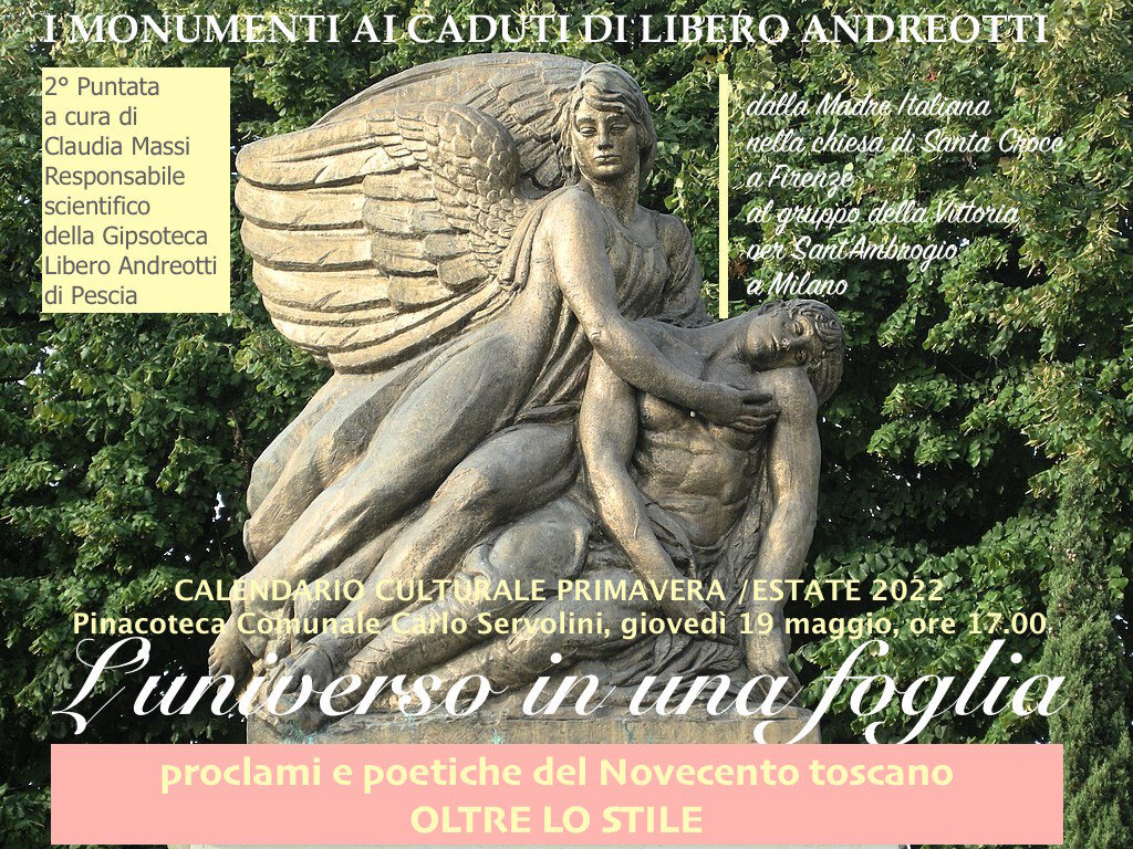 Sarà Claudia Massi, Responsabile scientifico della Gipsoteca Libero Andreotti di Pescia, a curare questo secondo appuntamento, con la conferenza dal titolo I monumenti ai caduti di Libero Andreotti: dalla Madre Italiana nella chiesa di Santa Croce a Firenze al gruppo della Vittoria per Sant’Ambrogio a Milano.
