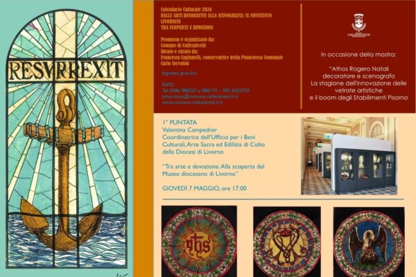 • Giovedì 14 maggio, ore 17.00, Massimo Sanacore terrà l’incontro “Le vetrate realizzate da Athos Rogero Natali per le principali chiese della Diocesi di Livorno”. Saranno presentati disegni e bozzetti inediti, oltre a un approfondimento sul ruolo spesso trascurato delle vetrate artistiche, elementi difficilmente classificabili ma fondamentali nella definizione degli spazi sacri. Le opere di Natali, diffuse in numerose chiese e cappelle, trasformano la luce in elemento spirituale attraverso raffigurazioni di santi e scene sacre, con particolare maestria nei rosoni.