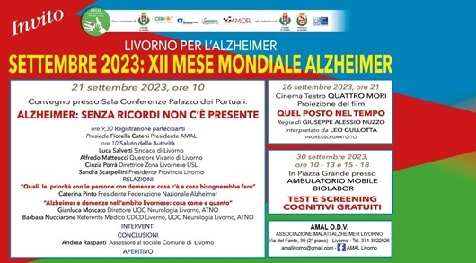 Ogni anno, il 21 settembre, si celebra in tutto il mondo la giornata dell’Alzheimer, con l’obiettivo di supportare la conoscenza di questa patologia e sensibilizzare l’opinione pubblica e le Istituzioni sull’importanza di affrontare questa malattia a livello socio-sanitario e assistenziale. Per questo motivo l’Associazione Malati Alzheimer Livorno – A.M.A.L. – organizza una serie di iniziative.