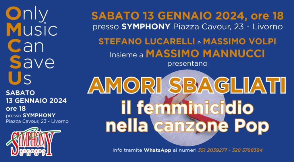 Sabato 13 gennaio, alle ore 18.00, Stefano Lucarelli e Massimo Volpi insieme a Massimo Mannucci presentano Amori Sbagliati – Il femminicidio nelle canzoni Pop.