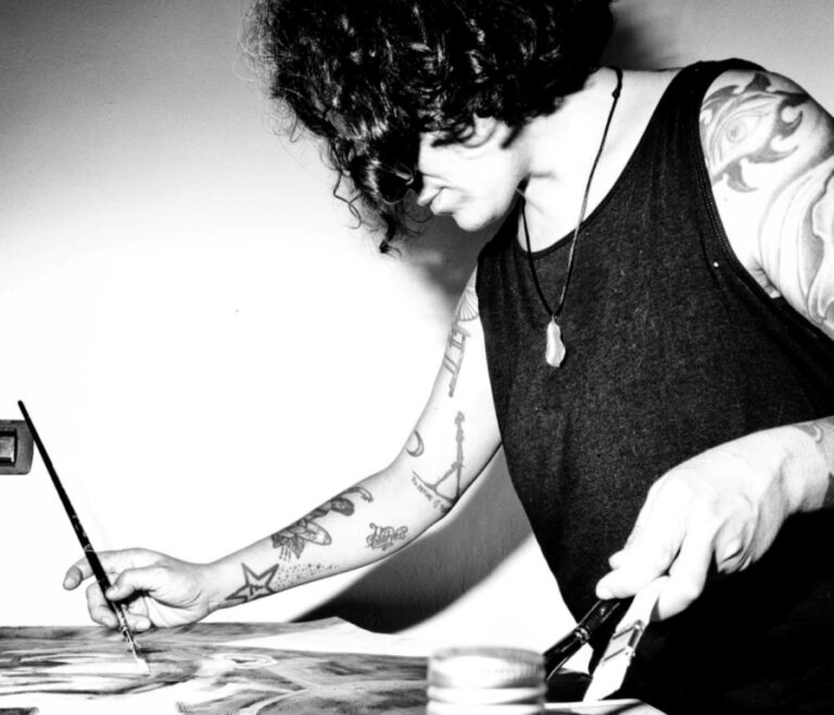 L’altra artista coinvolta è la livornese Valentina Restivo classe 1983. Laureta in Cinema e immagine elettronica presso il corso di laurea di Cinema, Musica e Teatro a Pisa, con una tesi illustrata su “Salò o le 120 giornate di Sodoma” di Pier Paolo Pasolini. Nel 2009 la Restivo frequenta la Scuola Internazionale di Arte Grafica Il Bisonte a Firenze. Dal 2004 al 2013 ha dipinto all’ interno dello studio Sottoelle a Livorno, insieme a Claudio Bimbi e Fabrizio Del Moro. I suoi soggetti sono personaggi di fama internazionale, grandi nomi nel mondo della letteratura, cinema, fotografia, pittura. Tributi e ispirazioni dei soggetti che l’ hanno accompagnata fin da piccola. Una ricerca quasi maniacale dei momenti, degli attimi tratti dalla televisione, dal cinema, dalla fotografia. Ha all’attivo diverse esperienze in Italia e all’estero fin dall’età di 21 anni. A novembre 2025 nel 50’ anniversario della scomparsa di Pier Paolo Pasolini realizza a Catania la mostra “ Con le palpebre infuocate” a Palazzo Scammacca del Murgo.