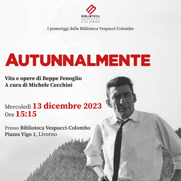 Proseguono gli incontri promossi dalla Biblioteca dell’Istituto Vespucci-Colombo. L’ultimo appuntamento del 2023 non riguarda la presentazione di un libro ma si tratta di un incontro dedicato a uno degli autori tra i più importanti del Novecento. Mercoledì 13 dicembre alle ore 15,15, presso i locali della Biblioteca situati al piano terra della sede di piazza Vigo, Michele Cecchini terrà un incontro dal titolo “AUTUNNALMENTE – Vita e opere di Beppe Fenoglio”. L’ingresso è libero e aperto a tutti. L’evento, organizzato dalla Biblioteca dell’Istituto in collaborazione con Erasmo Libri, si configura come un piccolo spazio di approfondimento della figura e delle opere dello scrittore albese.