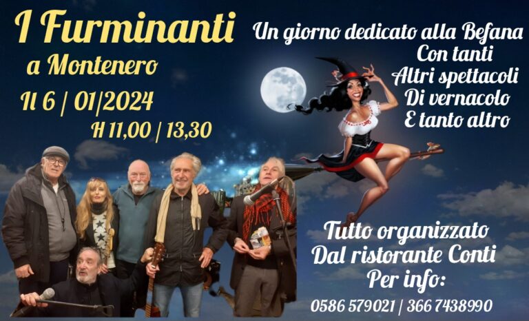 Dopo la data cancellata del 21 dicembre I Furminanti tornano a Montenero per festeggiare la Befana, il 6 gennaio, insieme alla Pro Loco di Montenero di Marzio Conti, gestore del noto ristorante “Conti” in piazza del Santuario all’ora di pranzo del giorno dell’Epifania.