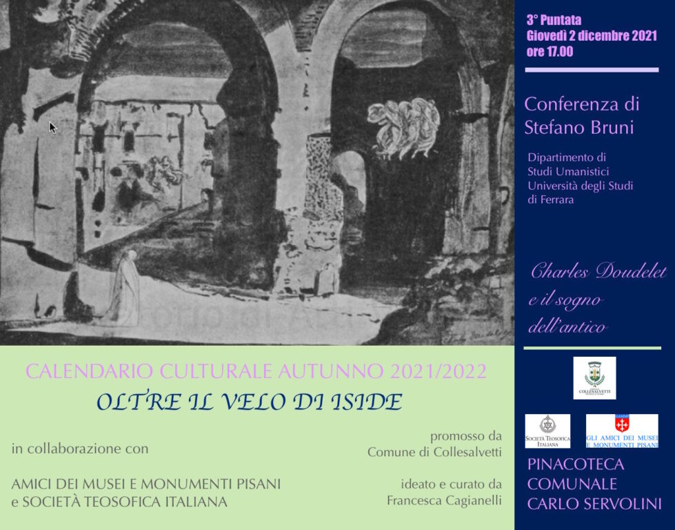 Nuovo appuntamento, giovedì 2 dicembre 2021, alle 17, alla Pinacoteca Comunale Carlo Servolini (Collesalvetti, via Umberto I, n. 63), con la seconda puntata del Calendario Culturale 2021/2022, “Oltre il velo di Iside”, promosso dal Comune di Collesalvetti, ideato e curato da Francesca Cagianelli, in collaborazione con Amici dei Musei e Monumenti Pisani e Società Teofisica Italiana, in occasione della mostra “Dans le noir. Charles Doudelet e il simbolismo a Livorno”, promossa da Comune di Collesalvetti, Fondazione Livorno, Fondazione Livorno – Arte e Cultura (fino al 20 gennaio 2022, tutti i giovedì, ore 15.30-18,30).