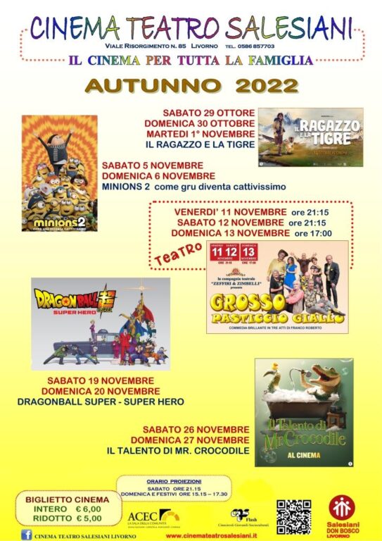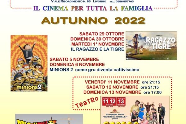Un’epica storia di due destini che si uniscono, il piccolo Balmani e un cucciolo di tigre del Bengala. Un’avventura imperdibile sulla forza dell’amicizia. Tornano alla ribalta le meravigliose creature gialle con la loro comicità imprevedibile i Minions 2 – Come Gru diventa cattivissimo – Sabato 5 novembre alle ore 21:15 – domenica 6 alle ore 15:15 e 17:30 . Non solo cinema vi aspetta, andrà in scena la Compagnia Zeffiri & Zimbelli con la Commedia Brillante Grosso Pasticcio Giallo, venerdì 11 novembre ore 21:15 – sabato 12 novembre alle ore 21:15, domenica 13 novembre alle ore 17:00 .Una pittrice che diventa un avvocato ,un fidanzato che diventa una governante, uno zio d’America piuttosto esuberante, un imbranato figlio di un petroliere del Texas, poliziotti, ladri veri e ladri finti, delitti che non sono delitti e persino il telefono… ‘mente’! ecco i principali ingredienti di questo grosso pasticcio giallo  commedia di autentico divertimento per tutta la famiglia. Prosegue il cinema con il terzo appuntamento con il film d’animazione Dragon Ball Super-Super Hero Sabato 19 novembre alle ore 21:15 – domenica 20 novembre ore 15:15 e 17:30. L’Armata del Nastro Rosso del passato di Goku è tornata con due nuovi androidi per sfidare lui ei suoi amici.